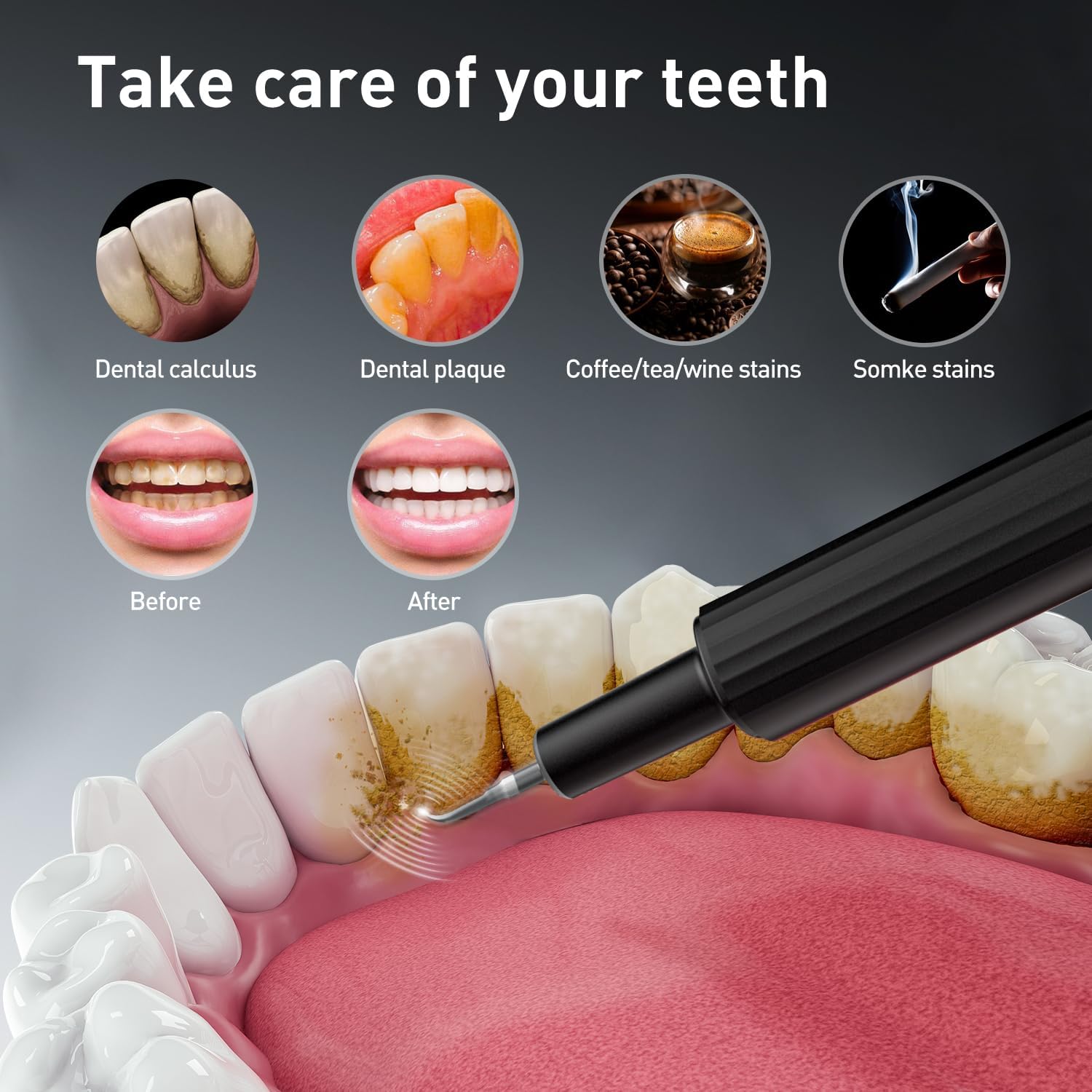 - High Efficiency: Use high -frequency vibration technology to remove tools. Compared with manual dental tools, it can effectively remove dental plaque.